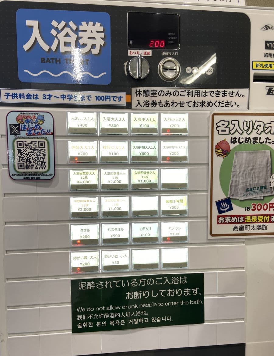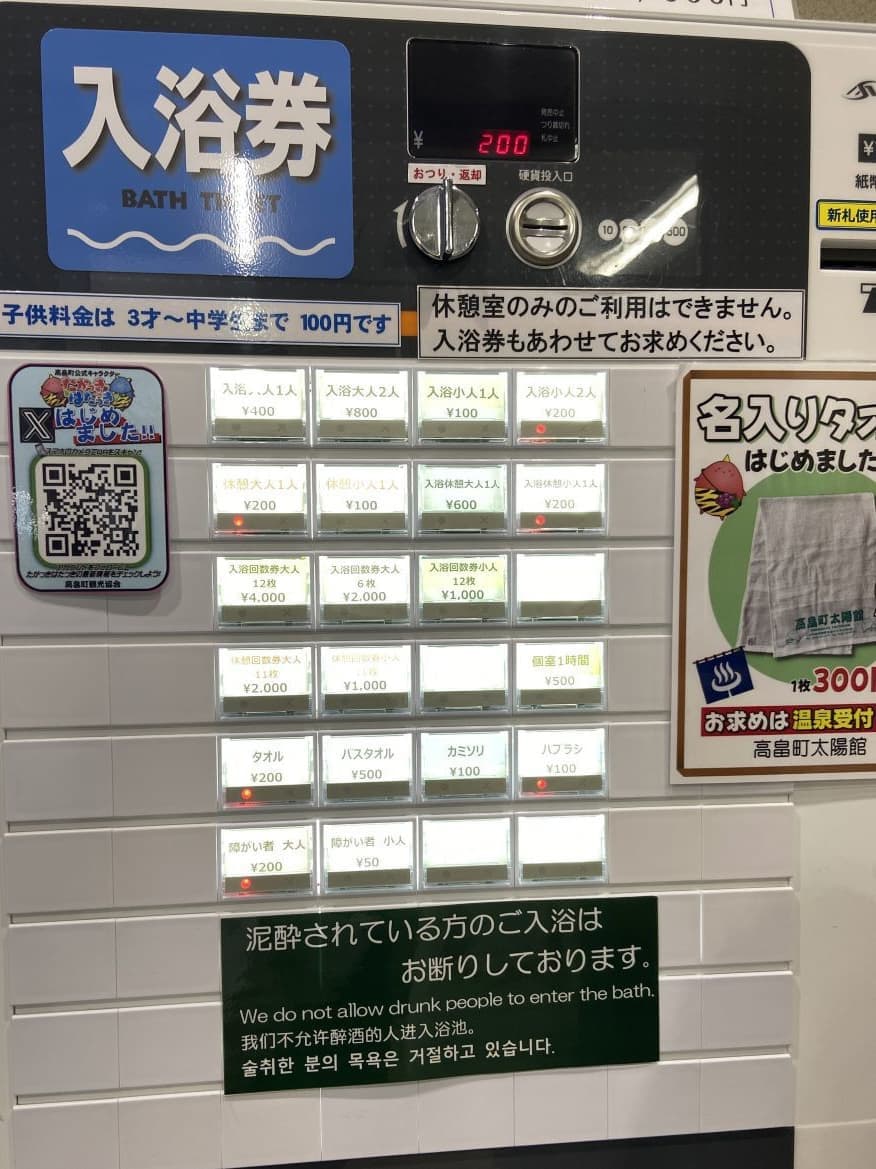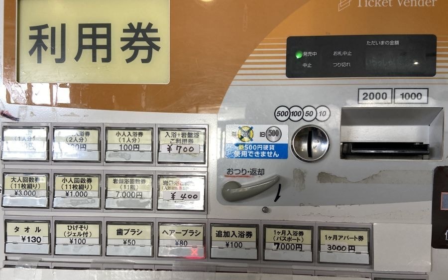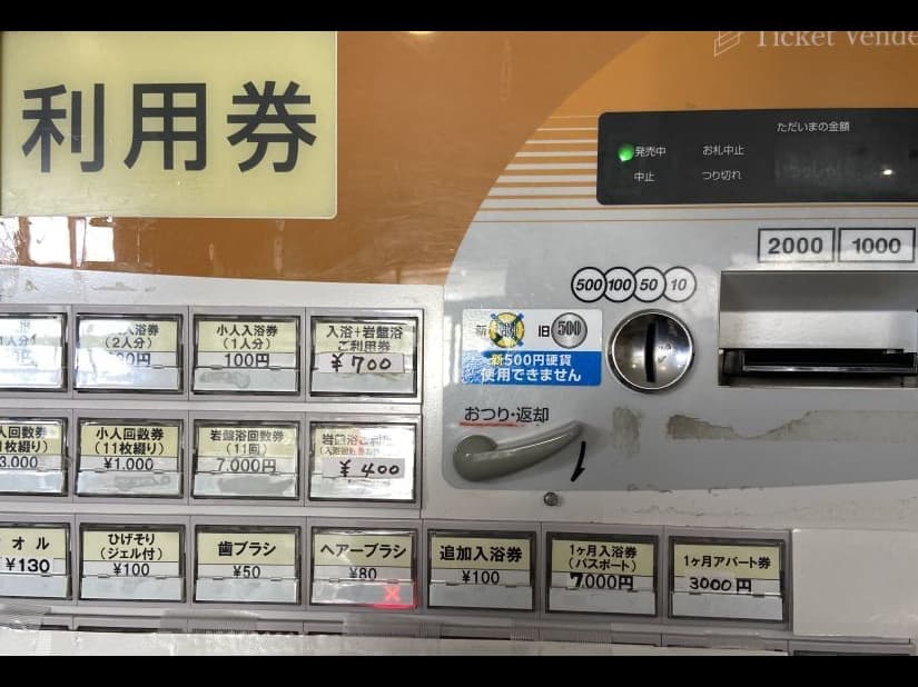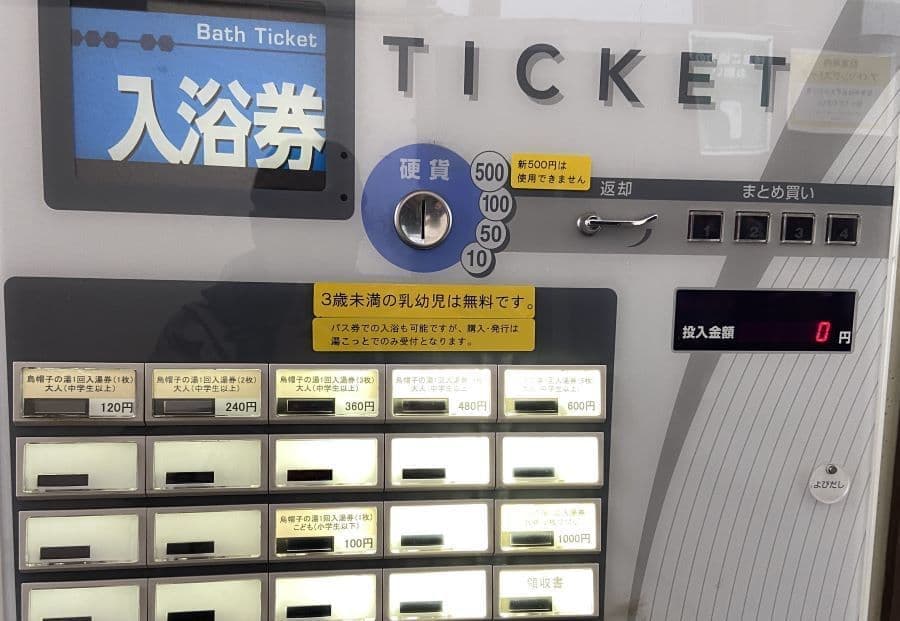 改札口横に入浴券の自動販売機があります。