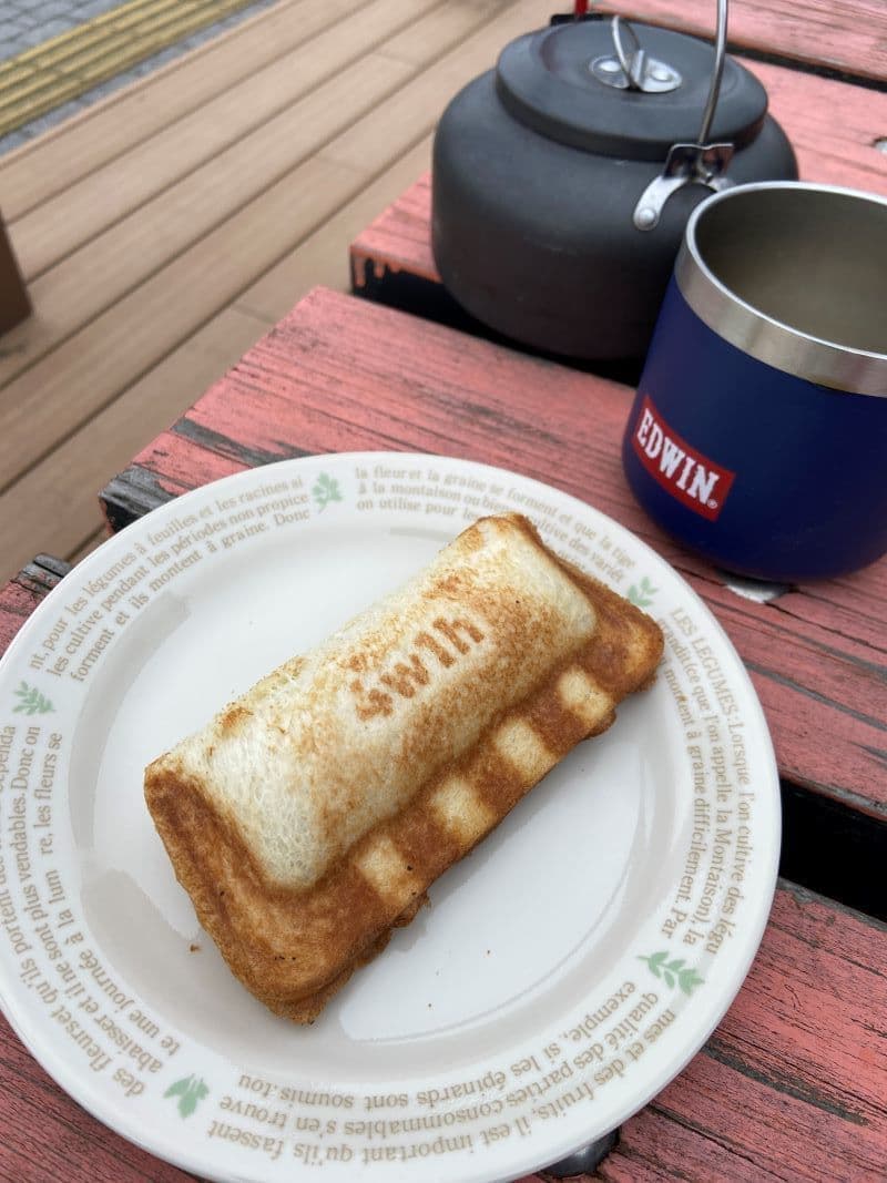 朝は、旅の同行の先輩たちがホットサンドを作ってくれました。