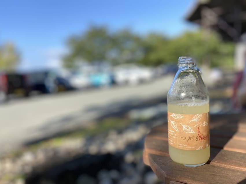 湯上りに当地のリンゴジュースを。