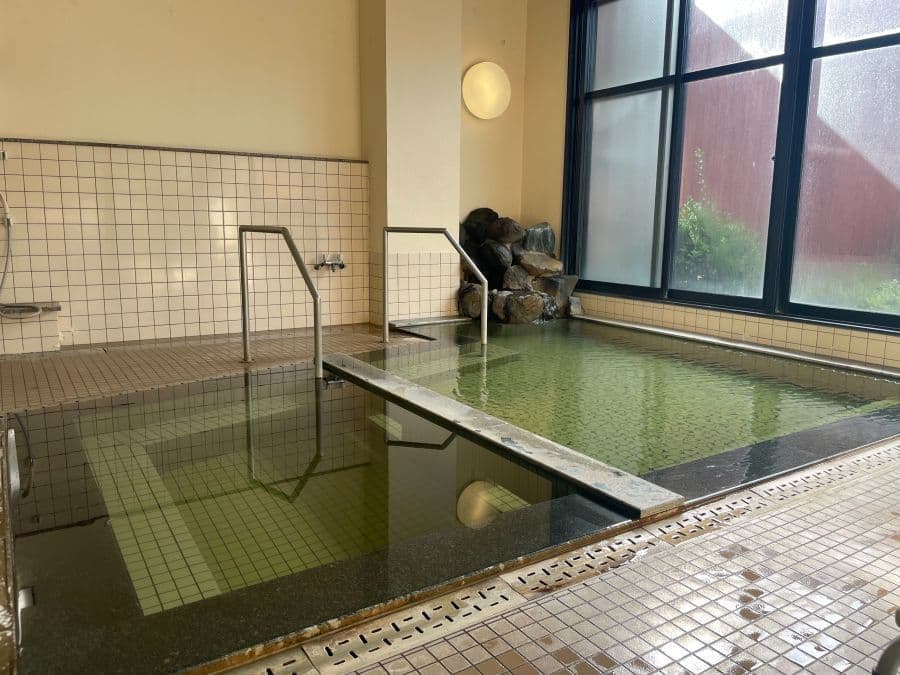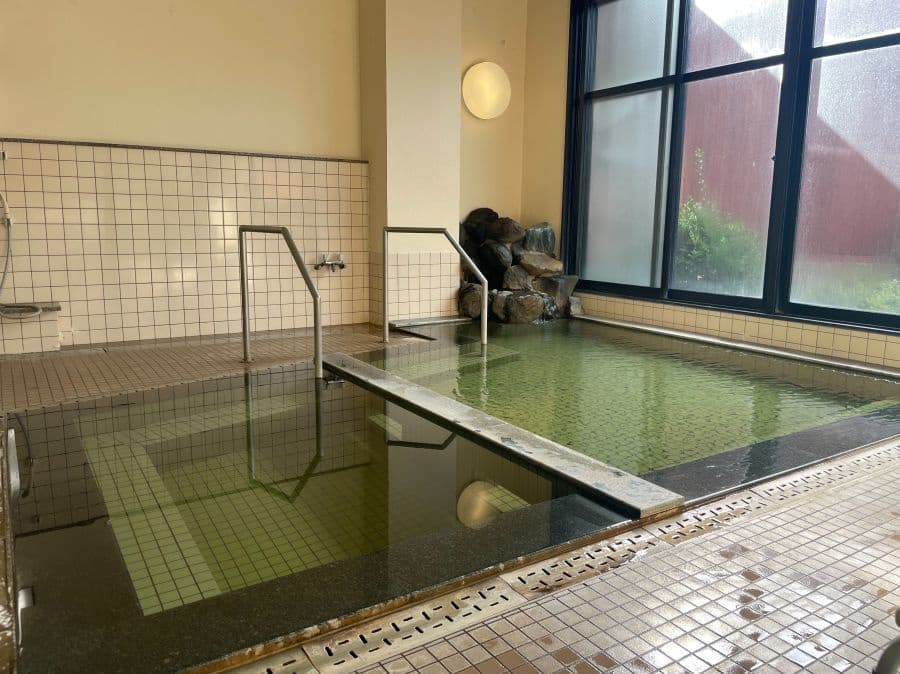 とても風情があり、浴槽も広めで「あつ湯」「ぬる湯」があります。