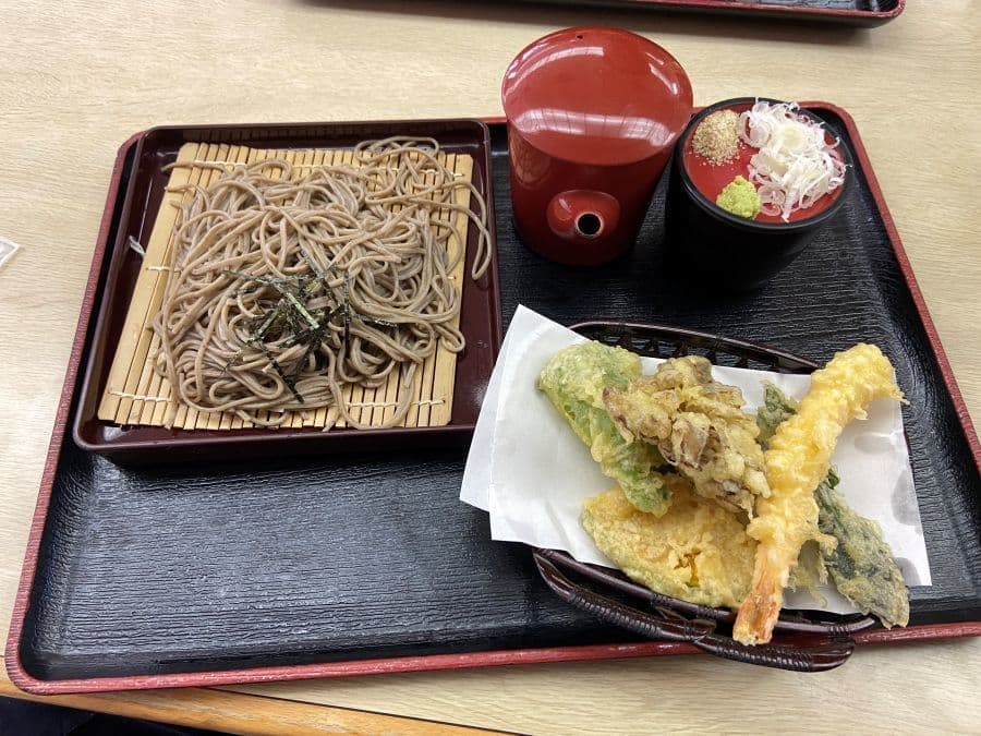 入浴の後は同施設内の食事処で十割蕎麦のセットを。