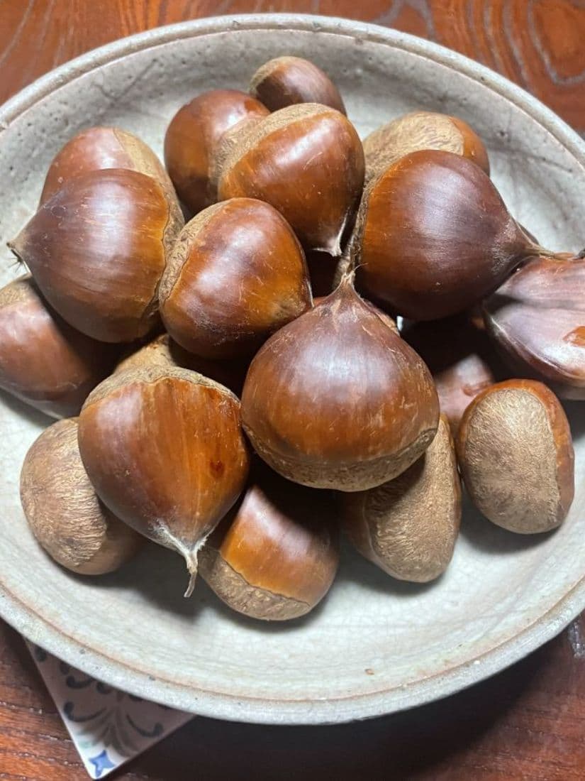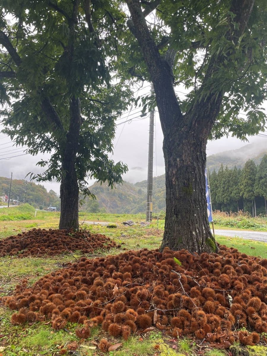 梅花皮荘から樽口峠へ戻る途中に藤田商店さんできのこや栗を購入しました。