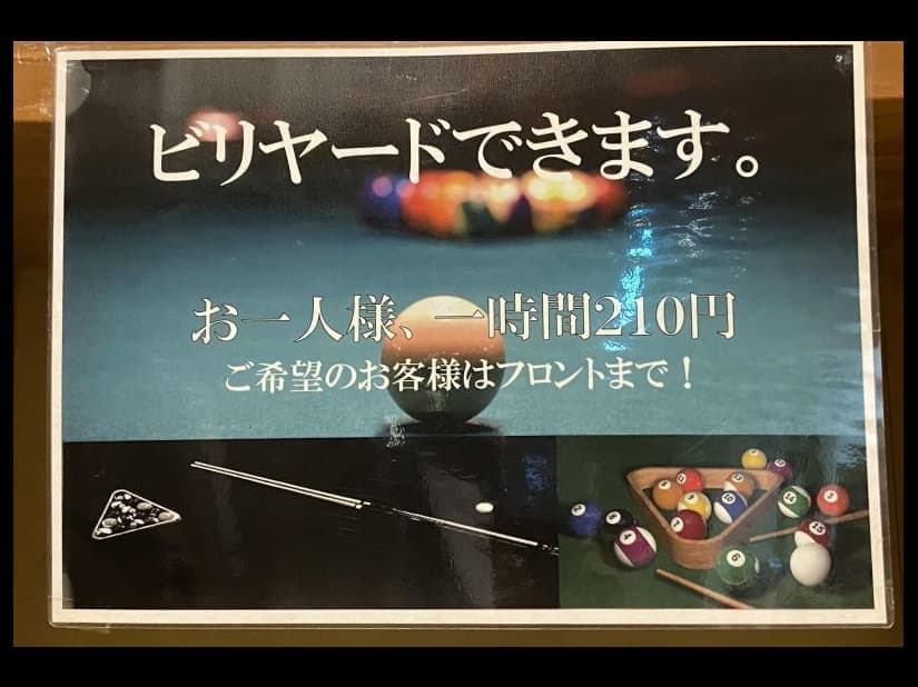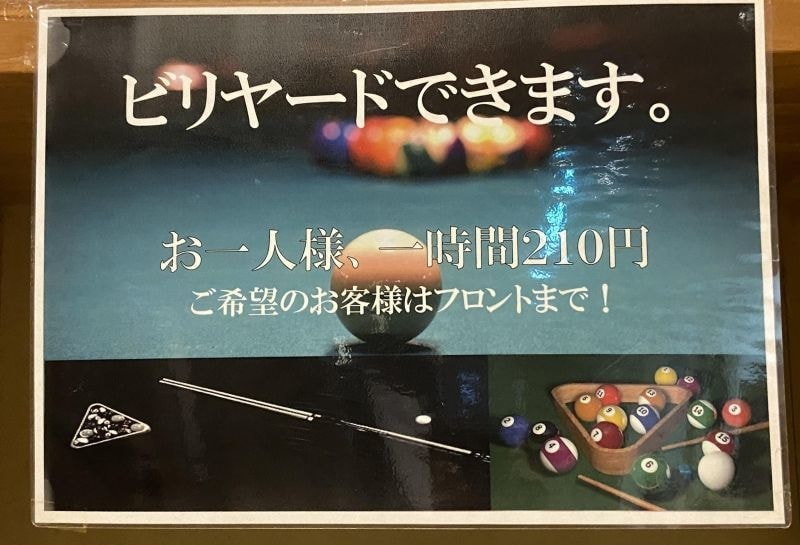 ビリヤードもできるという百々温泉 めぐみ荘(津山市加茂町)